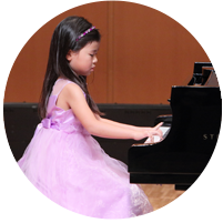 リトミッククラスは首の座りはじめた7か月から、ピアノ・うた個人レッスンは2歳から、グループレッスンは2歳~年長までのコースがございます。